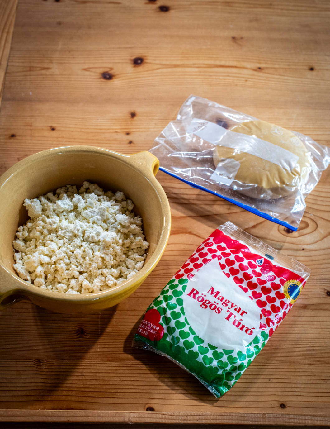 A rögös túrót elkeverjük a cukorral, a vaníliás cukorral és a tojással. Citromhéjjal ízesítjük.
